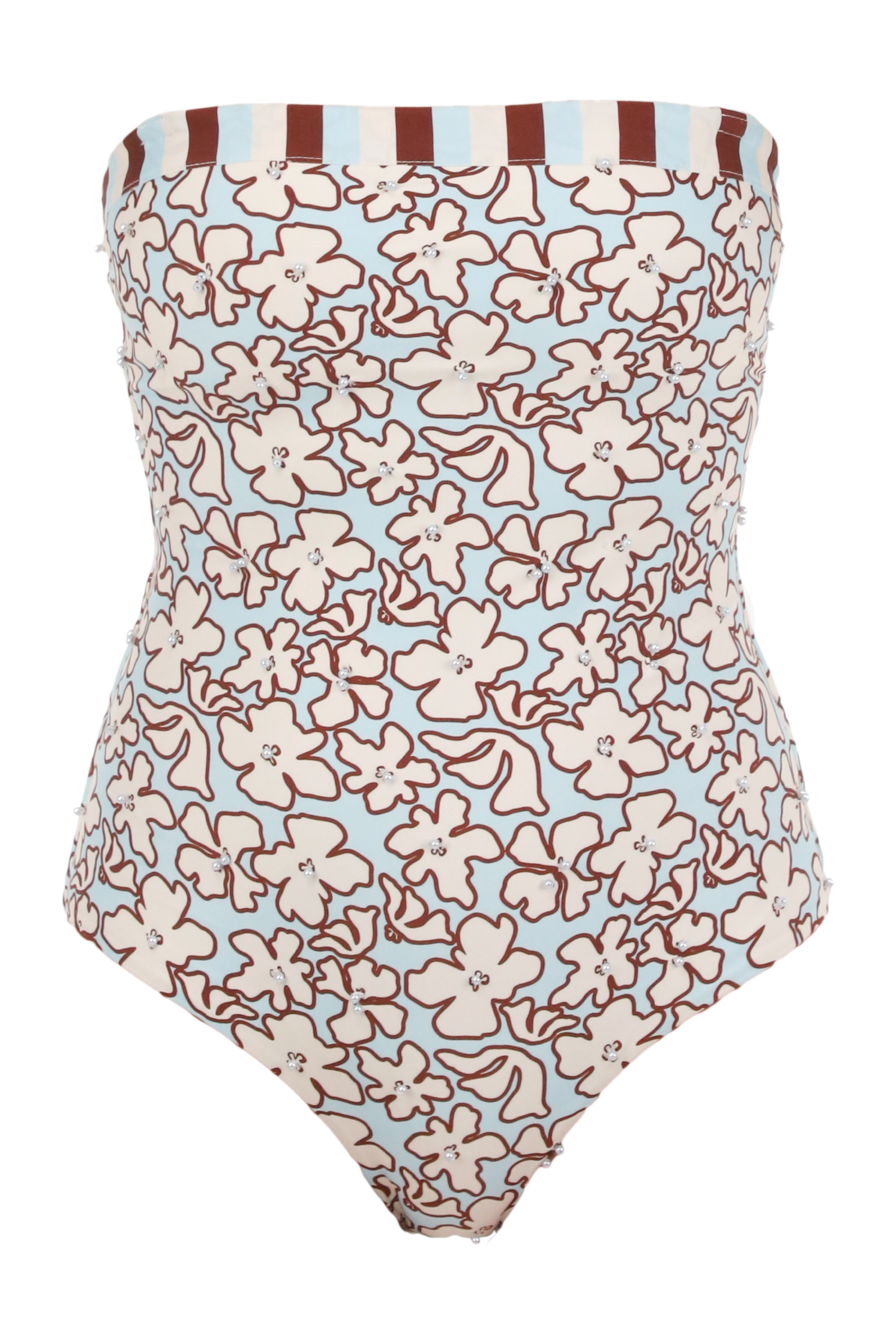 80% polyester – 20% spandexLocalized print (placement print)Soft and stretchy textureComfortable and flattering fitSophisticated design for beach or resort wear