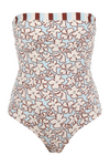 Swimwear / One-Piece, a one-piece swimsuit featuring a localized organic-inspired print that evokes the natural fluidity of movement and the lightness of an ethereal environment. Its feminine silhouette adapts to the body, offering a perfect balance between style and comfort.