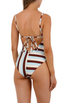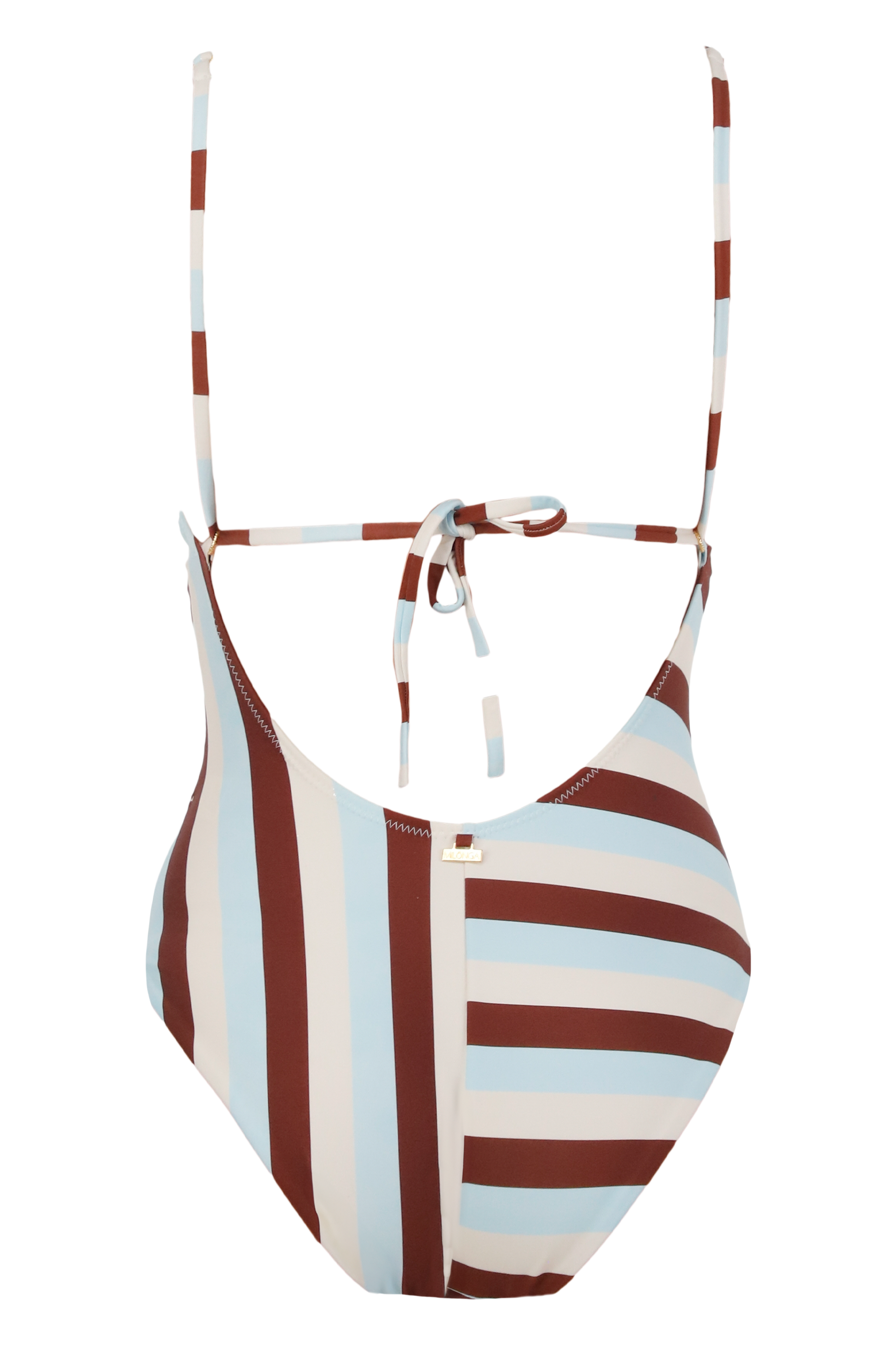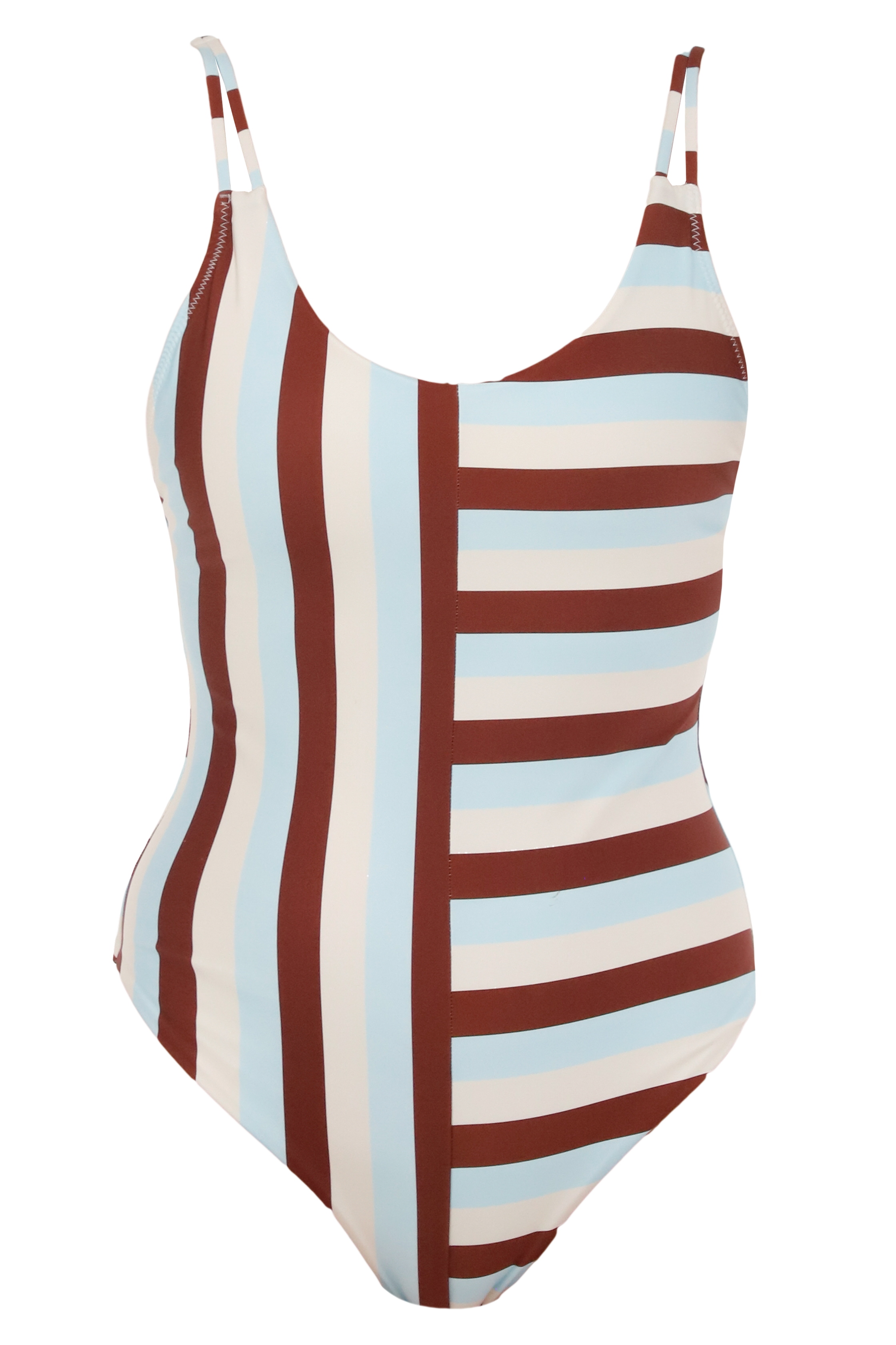 Swimwear / One-Piece, a one-piece swimsuit featuring a localized organic-inspired print that evokes the natural fluidity of movement and the lightness of an ethereal environment. Its feminine silhouette adapts to the body, offering a comfortable and flattering fit.