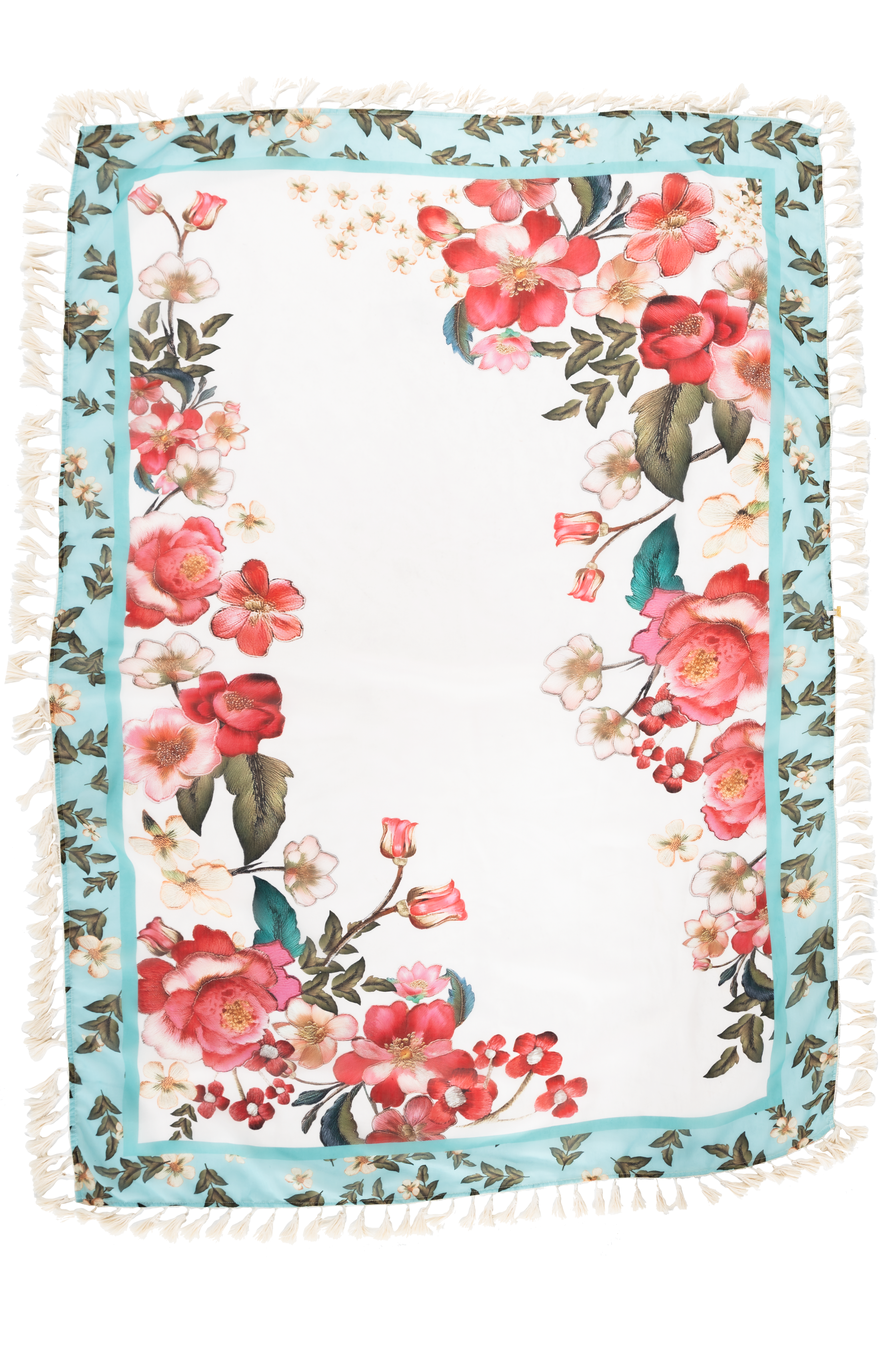 Pashmina en estampado floral con textura ligera y caída fluida. Confeccionada en tela de tacto suave, incluye delicados pompoms en el borde que aportan movimiento y un aire artesanal.